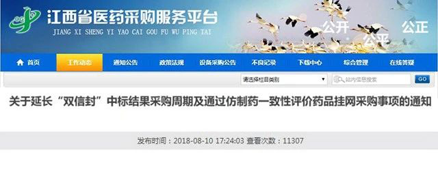 8月10日,江西省發(fā)布《關(guān)于延長“雙信封”中標(biāo)結(jié)果采購周期及通過仿制藥一致性評價藥品掛網(wǎng)采購事項(xiàng)的通知》,對通過一致性評價的藥品采購做出了政策支持: