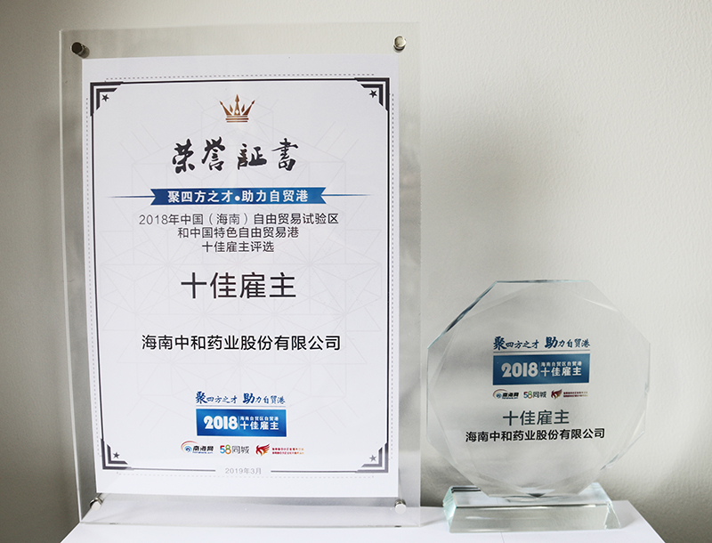 (中和藥業榮獲2018年海南自貿(區)港十佳雇主稱號)