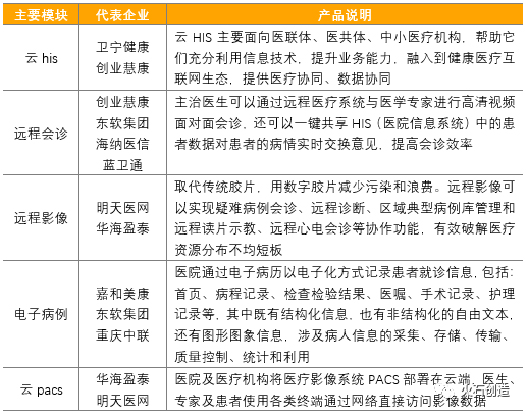表1 醫療信息化主要模塊代表企業(來源:根據公開資料整理)
