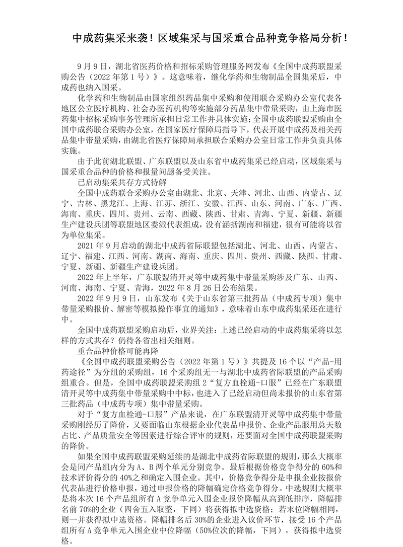 中成藥集采來襲!區域集采與國采重合品種競爭格局分析