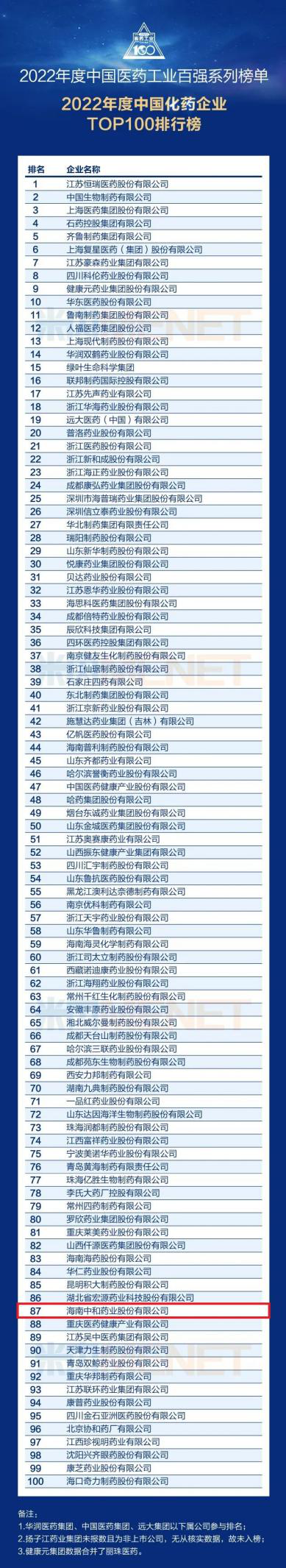 6月27日,2023米思會在浙江湖州·龍之夢國際會議中心隆重召開,會上發布了2022年度中國醫藥工業百強系列榜單。海南中和藥業再度榮登中國化藥企業TOP100排行榜,位列第87位,較2021年前進了3個名次,并已連續5年蟬聯此項殊榮。