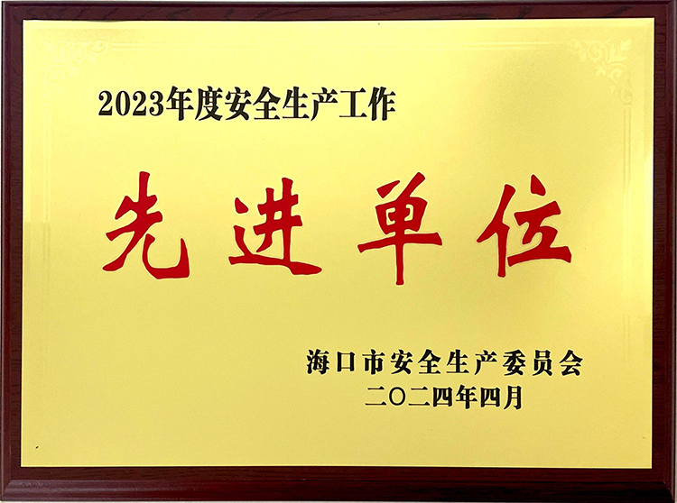 喜報!公司獲評海口市安全生產(chǎn)委員會2023年度安全生產(chǎn)先進單位