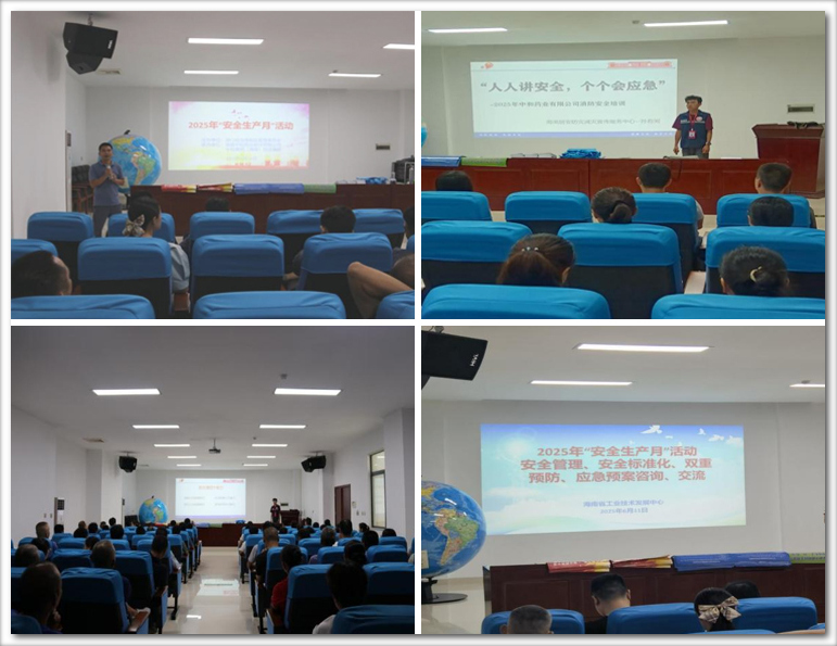 2025年6月是第24個全國“安全生產月”,為了深入貫徹落實安全生產方針政策,切實增強全員安全意識和應急能力,海南中和藥業股份有限公司圍繞“人人講安全、個個會應急——查找身邊安全隱患”主題,精心組織、周密部署全員安全培訓與應急演練系列活動,從生產一線員工到公司管理層,全員參與,共同奏響安全生產的主旋律。